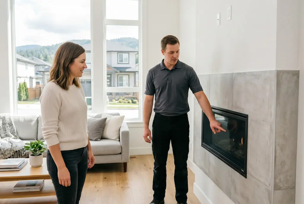 Gas line work. If your home already has a gas line near the install location, connection is straightforward. If the line needs to be extended from across the house, or if your gas supply needs to be upgraded to handle the additional BTU load, that adds to the scope. Homes in older neighbourhoods across Burnaby, Coquitlam, and parts of Vancouver sometimes need a gas line upgrade to accommodate both a new fireplace and existing appliances like the furnace and water heater.